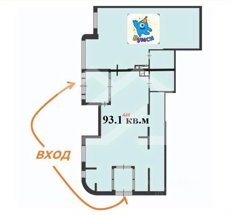 1119969. Предлагаем угловое помещение свободного назначения, площадью 93.1 кв. м, расположенное на первом этаже 20-этажного жилого дома.