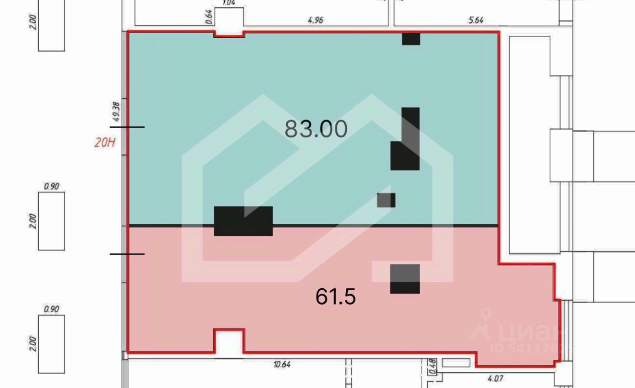 1143493. Предлагаем помещение свободного назначения в ЖК "Остров", площадью 61.5 кв. м, расположенное на первом этаже 22-этажного жилого дома.