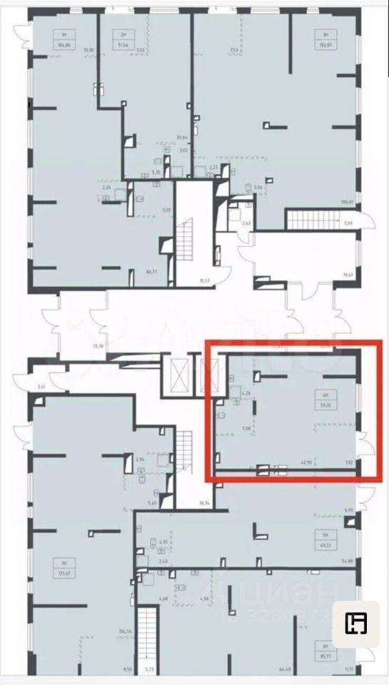 Общая площадь: 59,3 м².