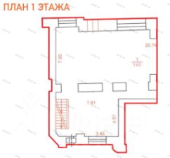 Помещение размещается на двух уровнях: первый этаж общей площадью 145 м² и антресоль общей площадью 75 м².
