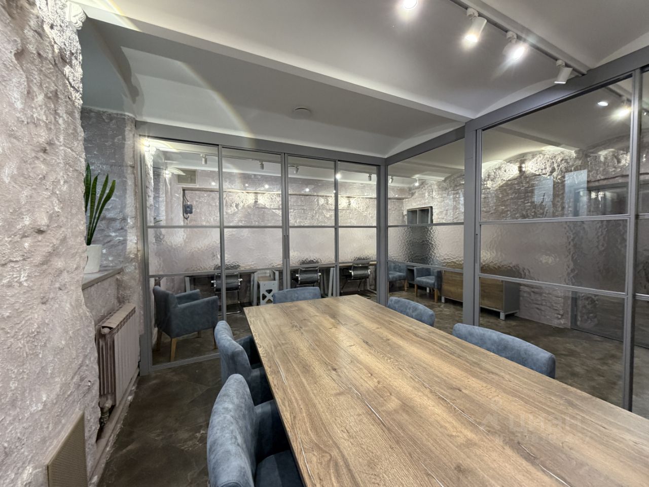 Помещение оснащено стеклянными стеновыми панелями. Это обеспечивает гибкость: вы можете легко адаптировать пространство под задачи Вашего бизнеса, сохраняя ощущение простора и света.