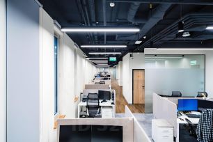 Опенспейс - 3 зоны на 85 раб.мест с мебелью и озеленением, потолок лофт высотой 3,5 м.