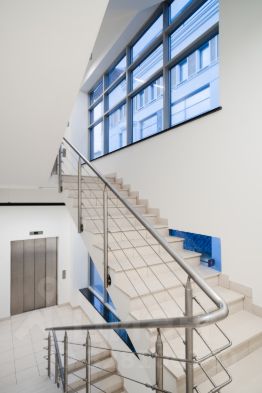 Цокольный этаж - входная группа (60 кв.м.), стойка рецепции, пост охраны с системой контроля допуска, мягкая зона, лифт, прямой выход на подземный паркинг БЦ;