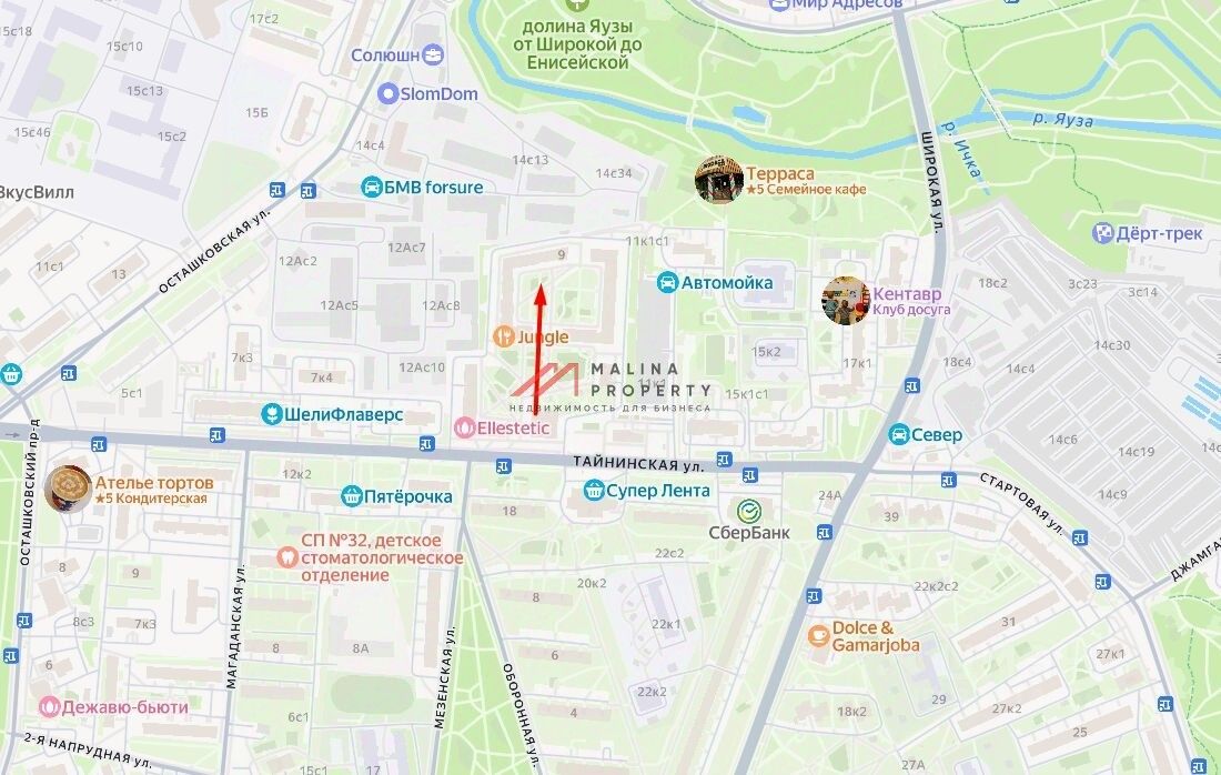 Аренда торгового помещения 35,7 м2 на ул. Тайнинская, д. 9 корпус 1 (15 минут пешком от метро Медведково). 1-я линия домов.