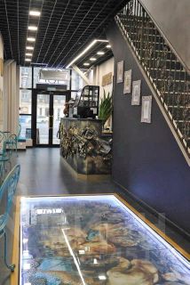 Большие витринные окна, дизайнерский ремонт, выполненный исключительно из дорогостоящих импортных материалов (натуральные камни, фрески, благородный металл и т.д.)