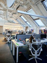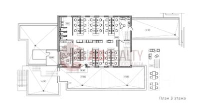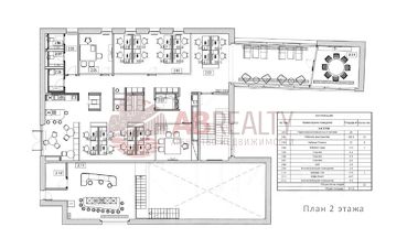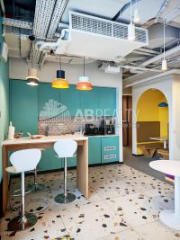Зона ресепшн. Смешанная планировка. Формат open space + отдельные кабинеты-переговорные + зоны хранения. Зоны отдыха, кухня, санузел.