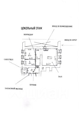 Высокий цокольный этаж с высокими потолками и большими окнами.