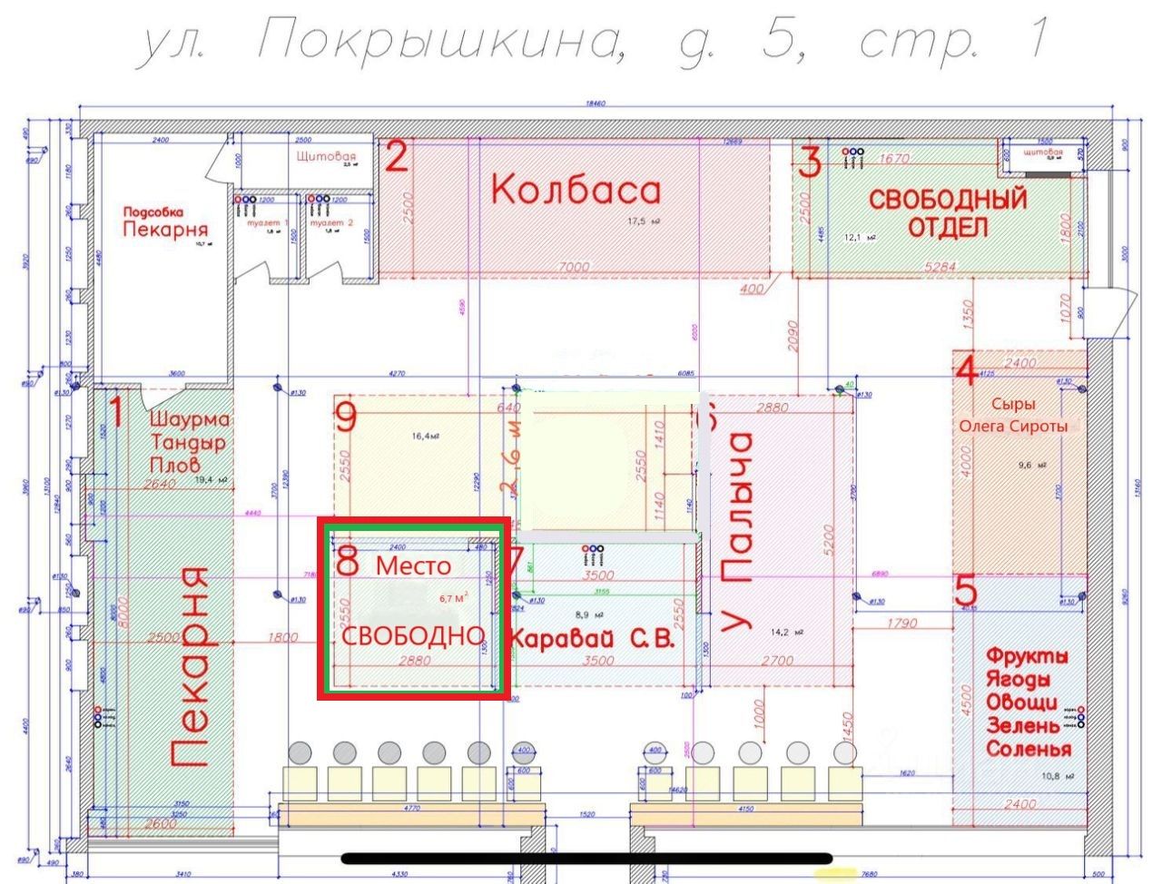 Заголовок: Сдается в аренду торговый отдел 6,7 м² в оживленном гастрономе