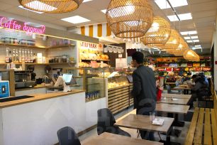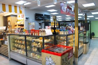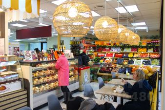 Наши соседи по гастроному — это популярные и любимые бренды: У Палыча, Каравай СВ, Сыры Олега Сироты, пекарня, кулинария, отделы свежих овощей, фруктов, белорусских и дагестанских продуктов.