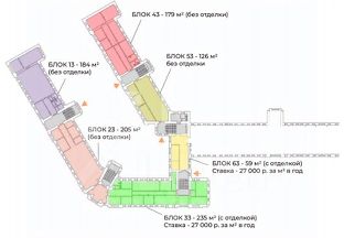 Отделка - С отделкой 2 этаж 240 кв.м, 3 этаж 235 кв.м, 4 этаж 276, 140, 128 кв.м, 5 этаж 395, 356,287,188 кв.м., остальные помещения БЕЗ отделки.