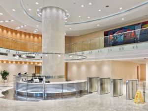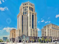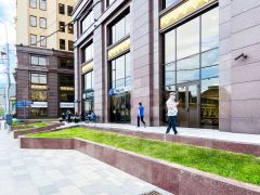 В башне класса А доступны шесть блоков от 172 до 1326 м². Их можно арендовать по отдельности или собрать под одного арендатора. Высотный корпус задуман как акцент всего комплекса, с фасадом из тёмного камня внизу и более светлой верхней частью.