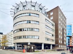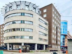 В бизнес-центре класса B+ доступны семь блоков от 256 до 1002 м². Их можно арендовать по отдельности или собрать под одного арендатора. По фактуре это спокойные рабочие офисы без декоративных излишеств: светлая базовая отделка, в крупных блоках ламинат и потолок армстронг, много окон по периметру и ровное естественное освещение. Самый большой блок 1002 м² решён как просторное смешанное пространство с открытой зоной и видом на город. Два блока по 740 м² близки по характеру, но один выглядит как более гибкий open space под адаптацию, другой заявлен как кабинетный и дополнен мокрой точкой для кухни и террасой. Остальные площади 518, 484, 262 и 256 м² подойдут для команд меньшего масштаба в том же деловом формате. Само здание — современный офисный корпус с понятной деловой средой.