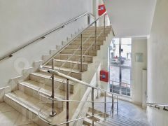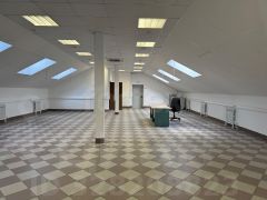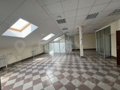 Блок 413 м² — смешанная планировка с open space, переговорной и зоной ресепшн. Помещение после недавнего ремонта, со светлой отделкой, плиткой на полу и стеклянными перегородками. Большие окна дают много дневного света, из окон открывается вид на город.