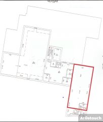 Блок 377 м² — кабинетный офис на 8 комнат с одной большой рабочей зоной, кухней и тремя санузлами. Отделка стандартная, в нейтральных тонах; на полу ламинат, потолок армстронг. Подойдёт для команды, которой нужен понятный рабочий контур с отдельными кабинетами и переговорной.