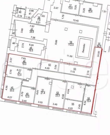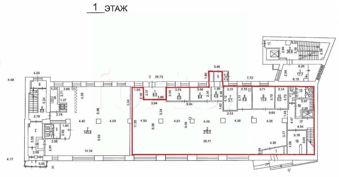 Блок 205 м² — кабинетная планировка на 11 комнат. Компактный деловой формат без кухни, удобный для административной, юридической или бэк-офисной функции.
