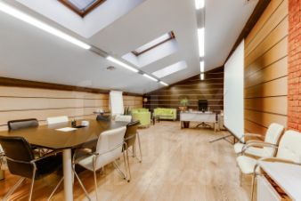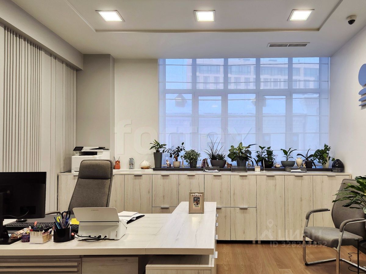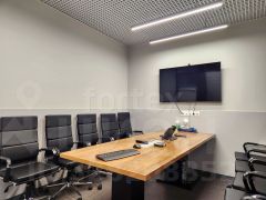 В бизнес-центре класса B+ предлагаются девять блоков от 231 до 8046 м², их можно арендовать по отдельности или объединять под одного арендатора. По фактуре это ровный офисный фонд без лишней декоративности: светлые и нейтральные стены, потолки армстронг, комбинированный пол и местами плитка, стеклянные перегородки, рабочее освещение и понятная деловая среда. В крупных блоках читается кабинетная организация с просторными рабочими зонами, переговорными, зонами ресепшн и кухнями; часть помещений уже меблирована. Из окон в ряде блоков открывается вид на город. Само здание — небольшой бизнес-центр второй половины 2000-х с наземной парковкой и внутренней инфраструктурой, где базовые бытовые сценарии решаются внутри.