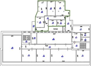 Помещение с отделкой, кабинетной планировки (5 кабинетов), оборудовано кухней.