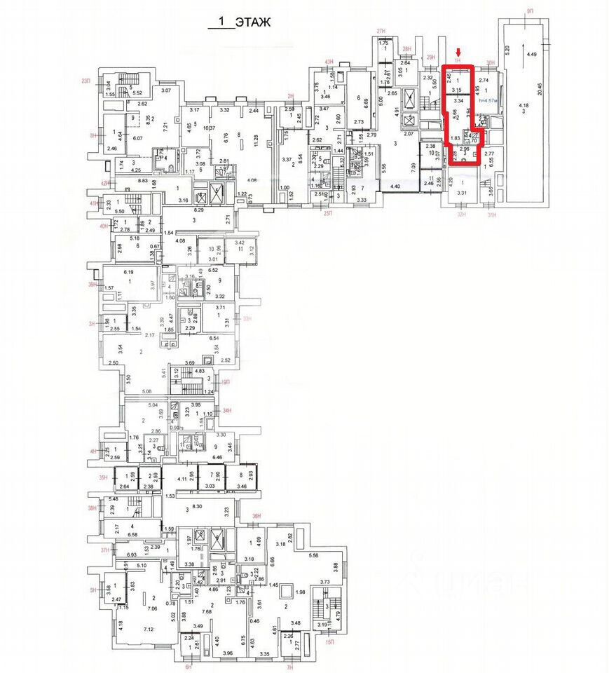 1139889. Предлагаем помещение свободного назначения, площадью 32,6 кв. м., расположенное на первом этаже 19-этажного жилого дома.