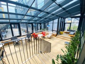 Лот: 53278pd. Отдельно стоящее двухэтажное здание, площадью в 549м2: 1й этаж 206м2, 2й этаж 195м2. Высота потолков 3,9м. Полностью изолированное двухуровневое помещение, которое может быть использовано как для жизни так и для бизнеса. Панорамные окна от пола до потолка, огромная терраса и зимний сад. Для теплого гаража отведено пространство на первом этаже, которое может быть модифицировано под нужды арендатора, в т.ч. витрины. Собственная терраса и оранжерея. 3 выхода из особняка, в том числе на площадь Славы