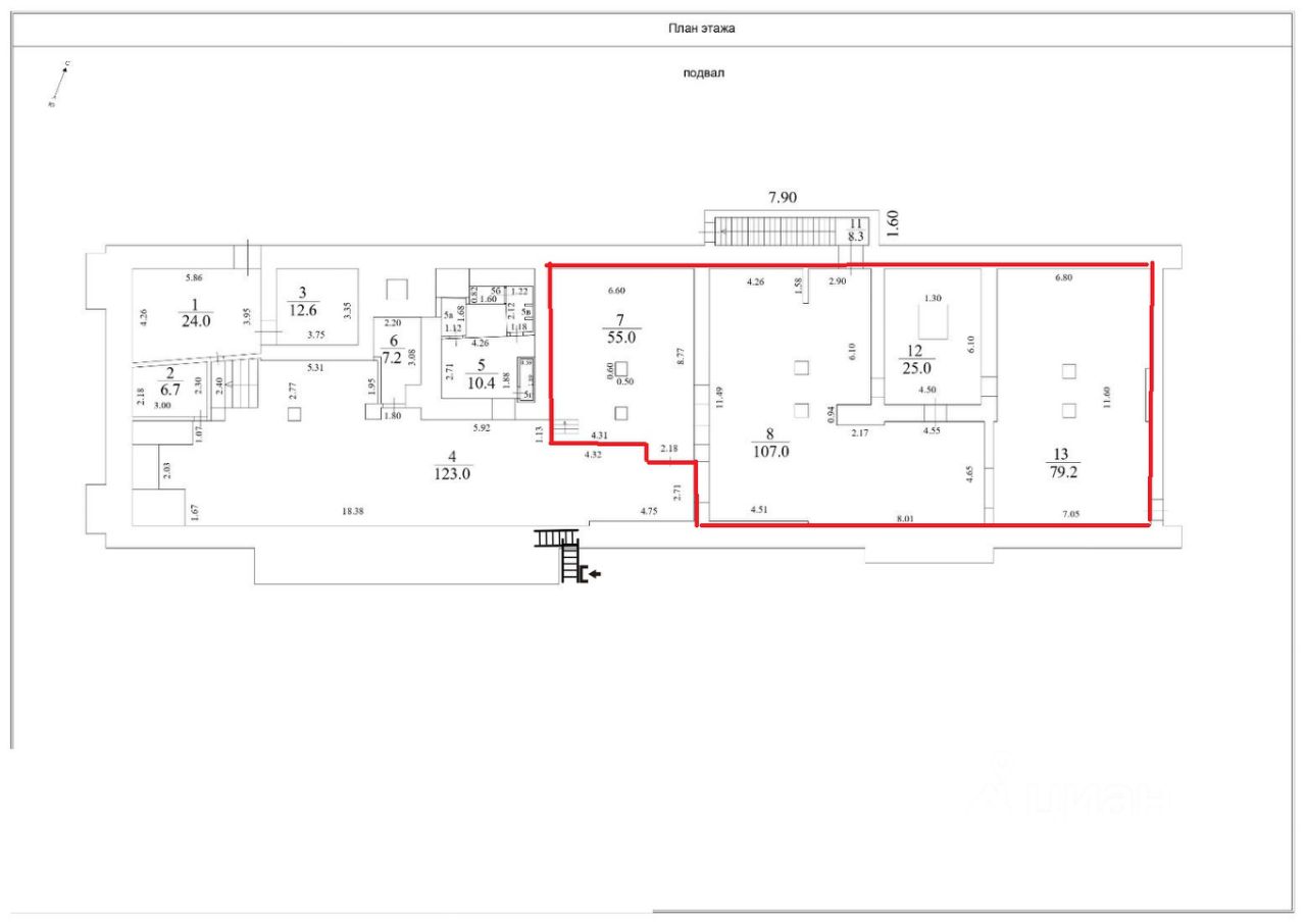 В помещении есть общий небольшой коридор. Есть действующий арендатор Тату Студия. У каждого арендатора своя дверь