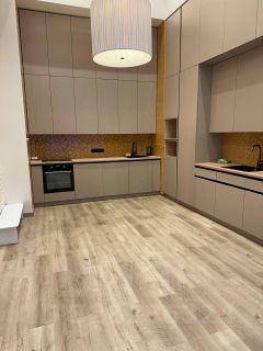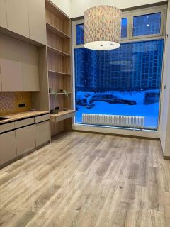 Удобная планировка: просторное помещение 40 м2, оборудовано кухней и техникой (посудомоечная и стиральная машины, холодильник, индукционная плита), маленькая комната, два санузла, коридор, предбанник. Установлены кондиционеры и пожарная сигнализация.