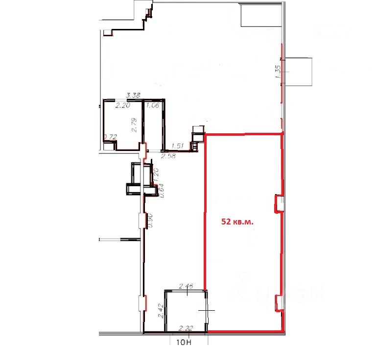 В помещении имеется отдельный вход. Планировка торговый зал, 1 сан. узел. Высота потолков 4,9 м, витринные окна по фасаду. Электрическая мощность 10 кВт. Место для размещения рекламной вывески.