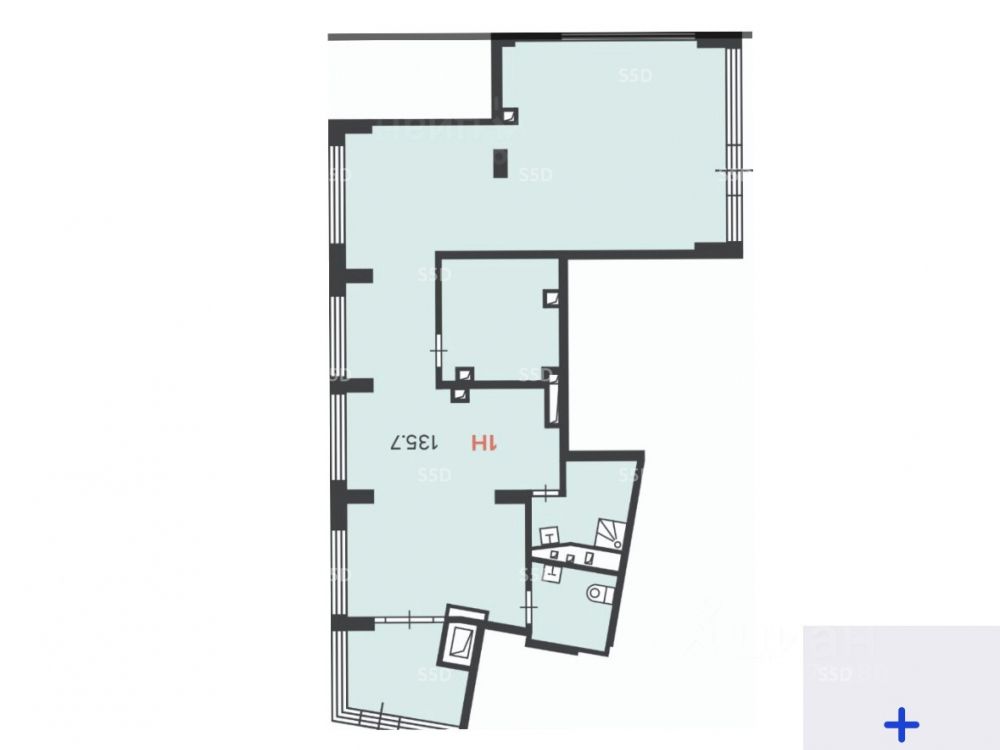 Первый этаж, площадью 135 м2. Высота потолка 4.4 м. Вход с первой линии, зона разгрузки/погрузки с торца. Зальная планировка. Панорамные окна. Центральные коммуникации. Электрическая мощность: 27 кВт (возможно увеличение). Технологическая вытяжка.