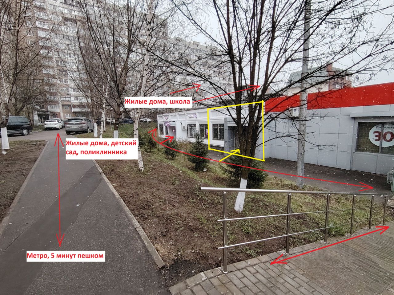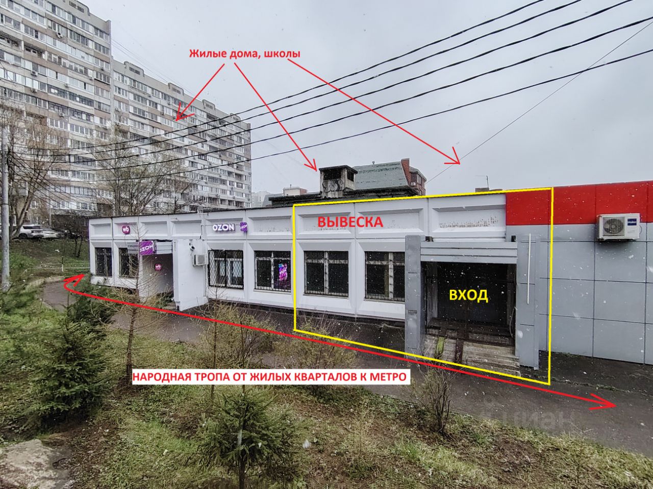 Народная тропа мимо помещения в течение дня, в школу/сад, ПВЗ ОЗОН.