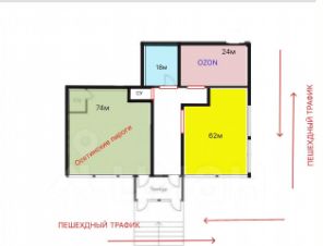 Площадь: возможна аренда 62м² и деление на меньшие площади 44м² и 18м²