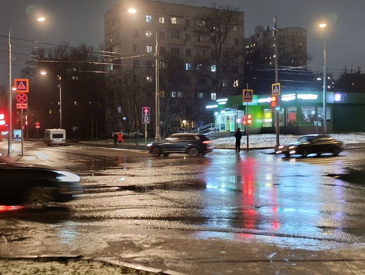 Высокий трафик: пешеходный и автомобильный поток на перекрёстке.
