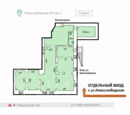 Отдельный вход с 1-й линии улицы Новослободская.