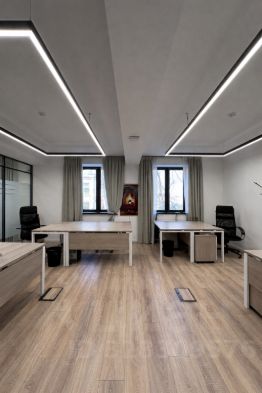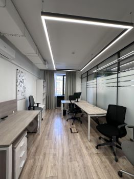• Планировка смешанная: собственный ресепшн, переговорная, кабинет руководителя, 6 кабинетов, 1 open space, кухня, 2 санузла.