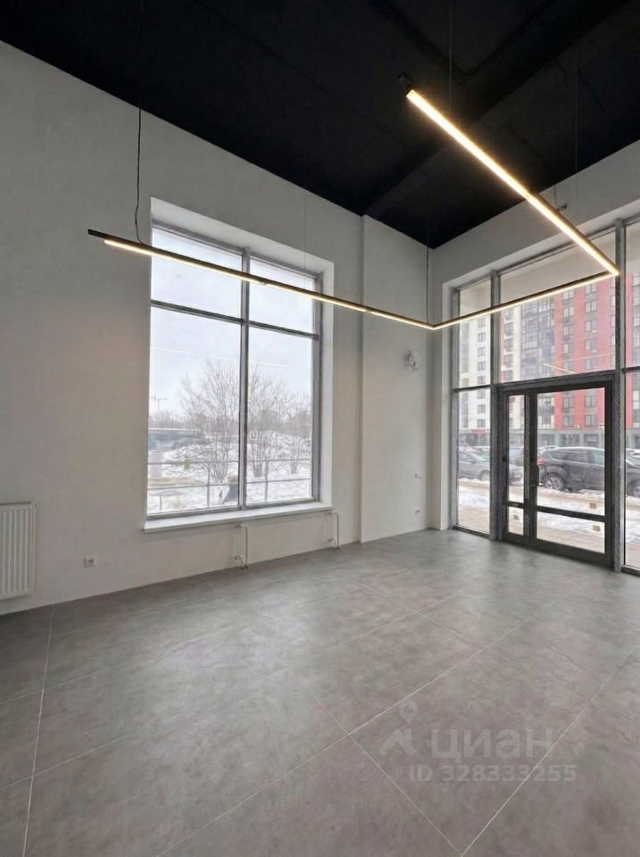 Помещение площадью 45 м2. на первом этаже жилого многоквартирного дома. Торцевое помещение. Большие панорамные окна на первую линию.