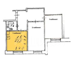 комната 12.2 м2 в нежилом помещении из 3-х комнат