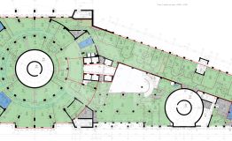 Крытая парковка на 525 мест, ресторан, столовая и кафе, фитнес-центр, 20 пассажирских лифтов.