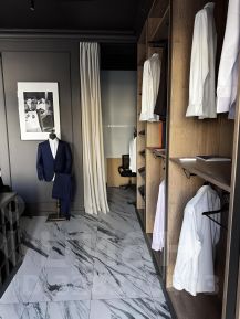 Есть оборудованная мокрая точка, кухонная зона, помещения под хоз нужды (оборудованы под примерочную и гладильную). Планировка максимально открытая, можно сделать перестановку на свое усмотрение.