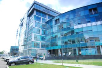 Подземная парковка на 460 мест, кафе и ресторан, фитнес-клуб, 7 пассажирских лифтов.