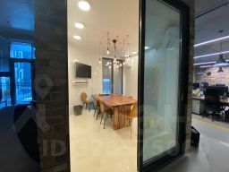 Описание помещения: Офисное помещение с дизайнерским ремонтом и функциональной планировкой. Панорамное остекление.