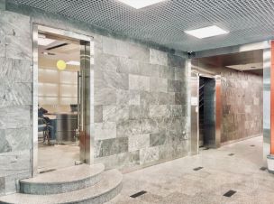 Офис занимает полностью весь четвертый этаж, оcнaщен кухней и отдельными санузлами. 5 кабинетов и зона лобби. Есть лифт.