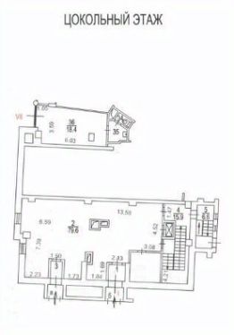 Цоколь с окнами 129,4 кв.м, вход и вестибюль с лестницей на 2 этаж;