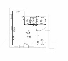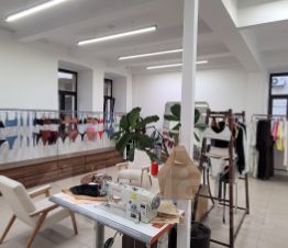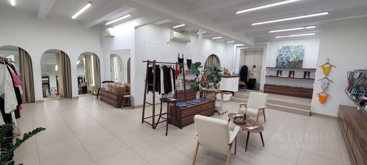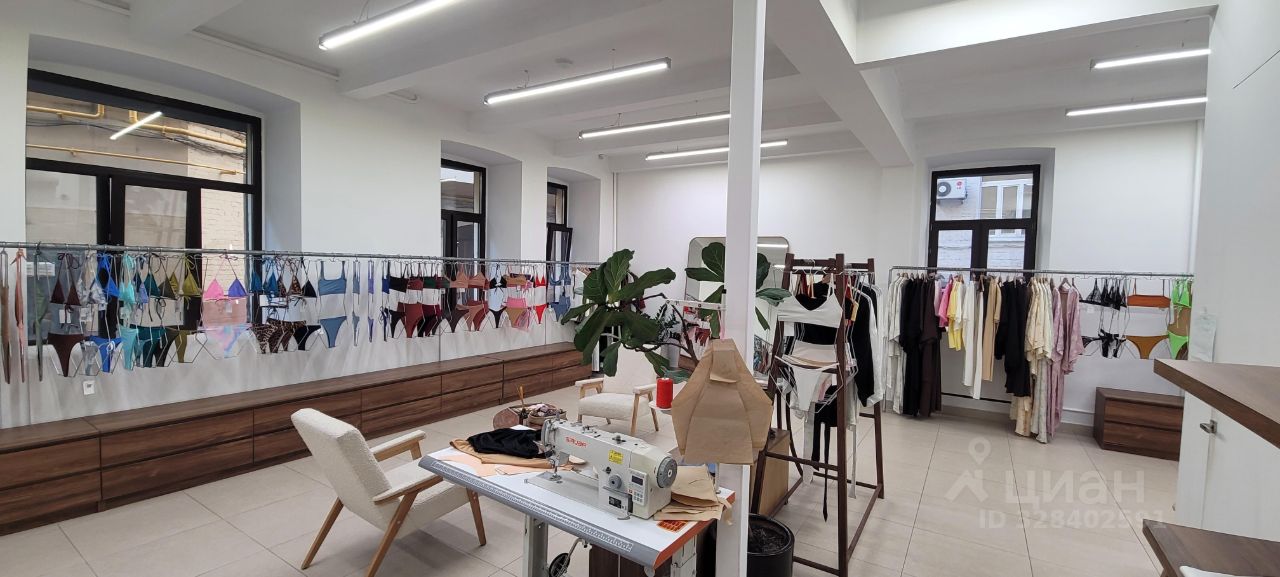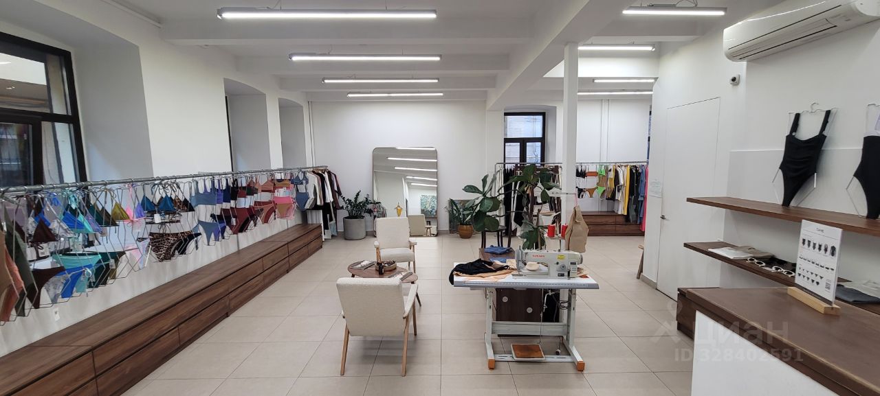 Помещение расположено в трех минутах от Патриарших прудов. Вход в помещение через арку с Малого Козихинского переулка.Сейчас помещение занимает магазин купальников PACHE.