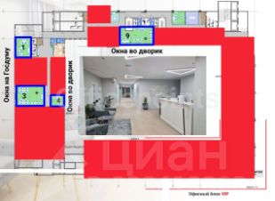 На этаже: ресепшн, переговорные, МФУ, кофе-поинт, кухня с панорамными окнами, с/у.