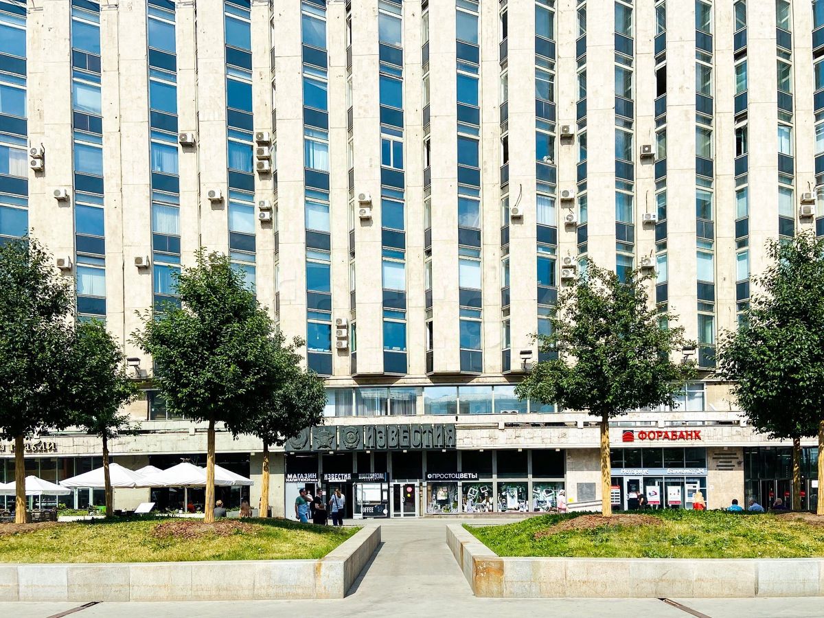 Офис расположен в здании класса B в бывшем доме "Известий". Это памятник конструктивизма: асимметричный фасад, вертикаль лестничного остекления, балконные горизонтали и решетка квадратных окон. Комплекс задумывался как единый редакционно-типографский дом газеты.