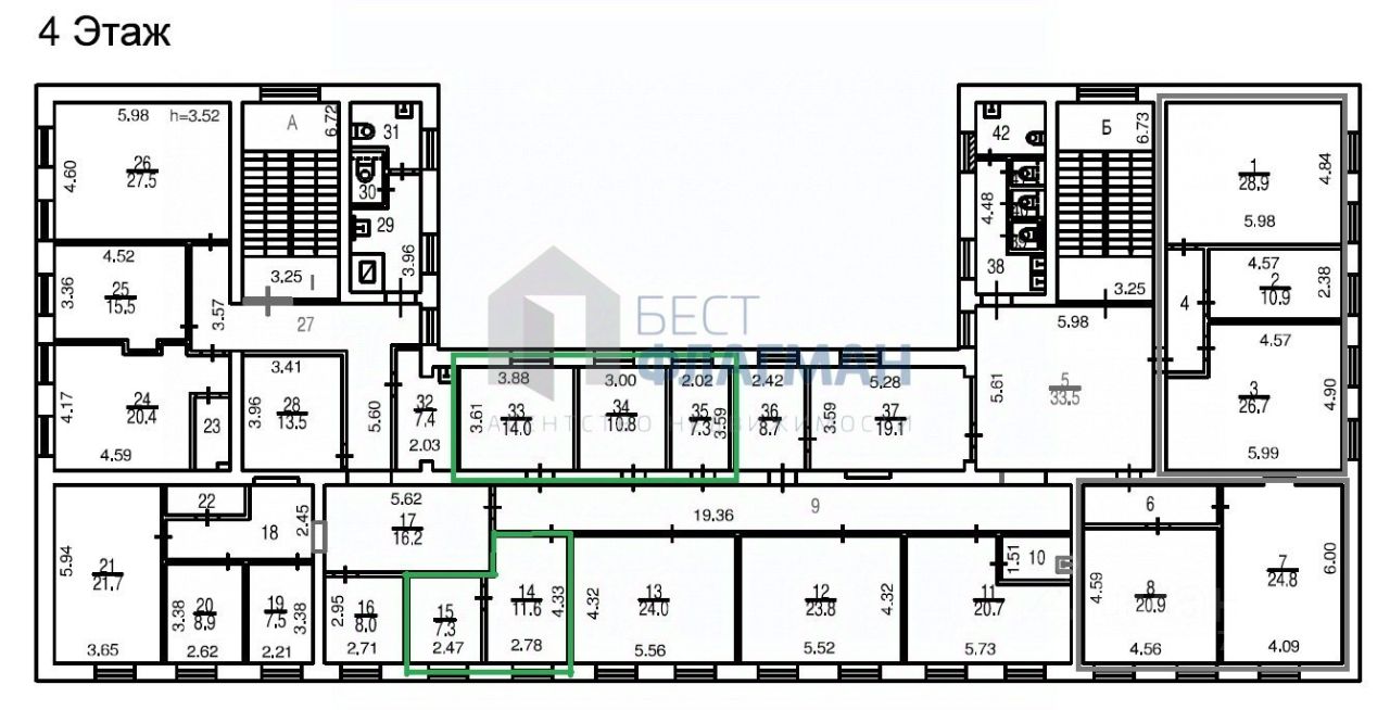 Помещение расположено на 4-м этаже 5-ти этажного административного здания.