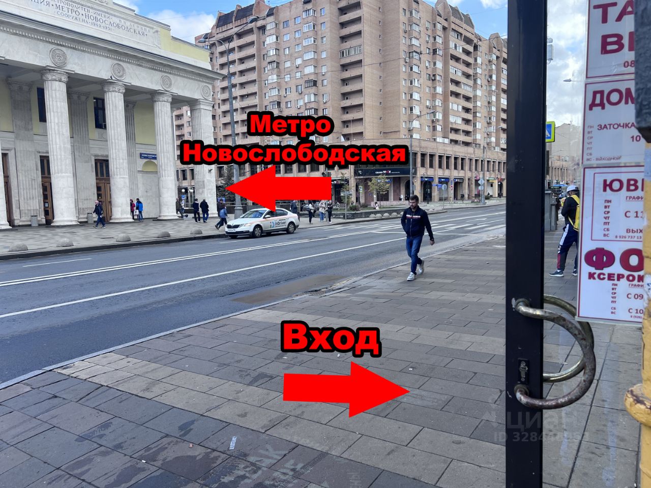 Сдается в долгосрочную аренду часть помещения площадью 6 кв.м. (4 кв.м около входа плюс дополнительное подсобное помещение 2 кв.м.) Под торговлю/услуги. В 30-ти метрах от метро Новослободская, вход с первой линии. Очень проходное место, огромный трафик людей в будни и выходные. Место под вывеску на фасаде прямо напротив метро. Рядом расположены три института и много офисных помещений. НЕ ПОДХОДИТ под ОБЩЕПИТ (шаурма, кофе и т.п.) Соседи: Фотосалон, Табак, Дом Быта, Ювелир!