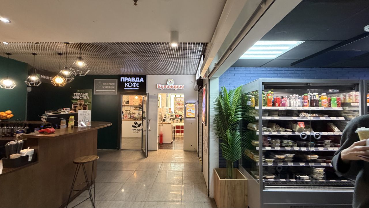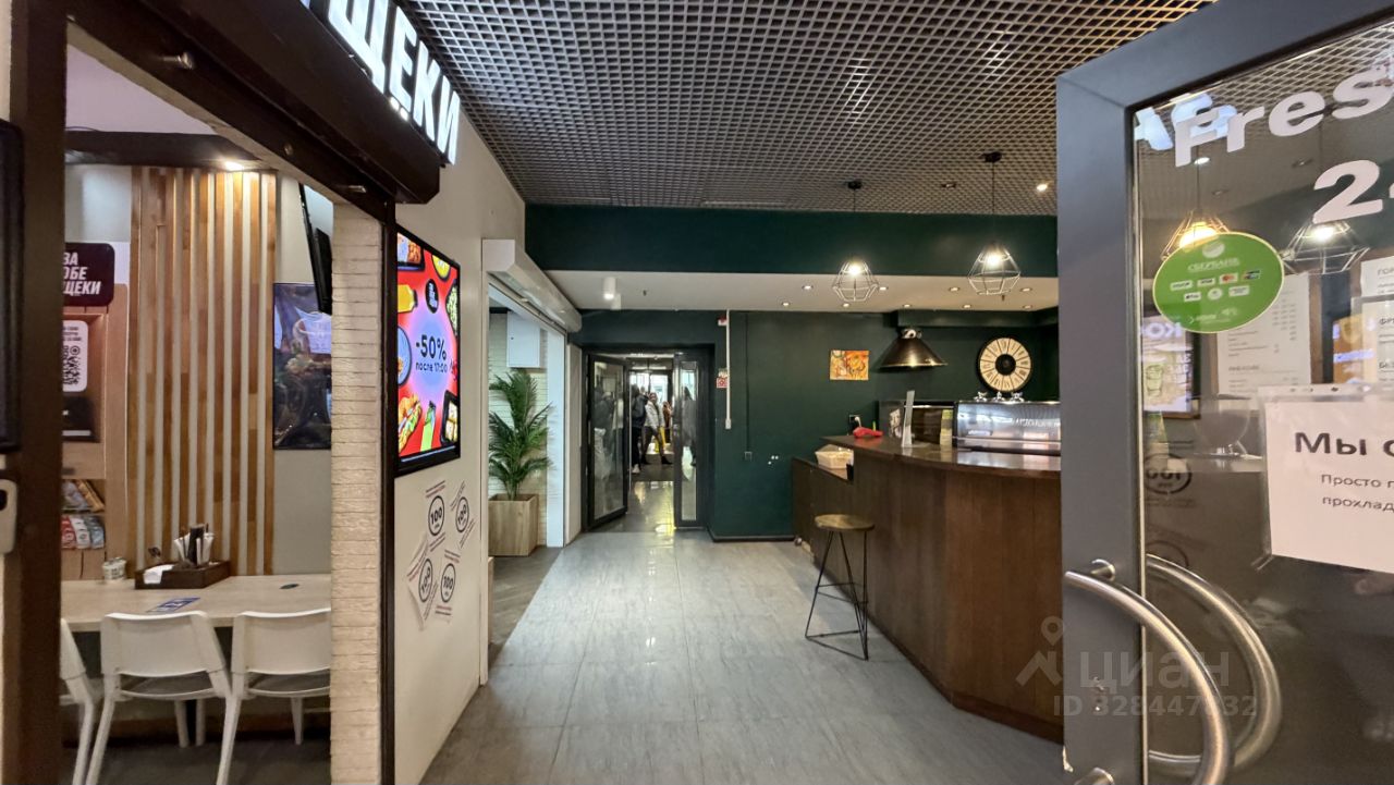 Находится в зоне фуд-корта бизнес центра. Интенсивный трафик.