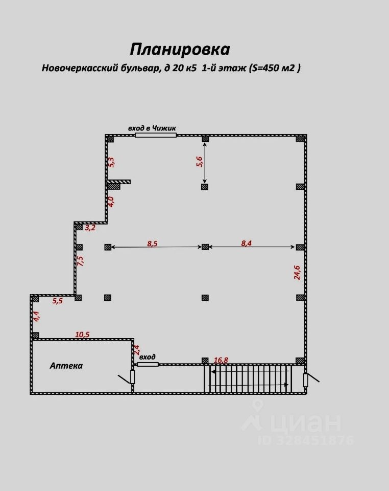 В здании располагается магазин Чижик, проход в Чижик через торговую площадь. Площадь можем разбить под любые цели.