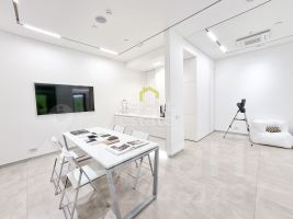 В отделке использованы качественные материалы: итальянская керамика на полу, продуманное точечное освещение. Помещение оснащено всеми необходимыми инженерными системами — приточно-вытяжная вентиляция, кондиционирование, центральная аудиосистема.