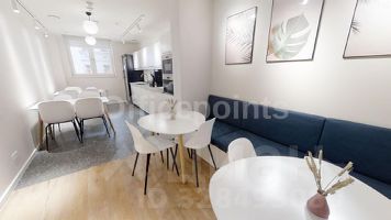 В помещении выполнена дизайнерская отделка, смешанная планировка.