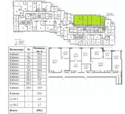 Описание помещения: Офисное помещение готовое к въезду. Состоит из 11 кабинетов, 2 санузла. Выполнена качественная офисная отделка.